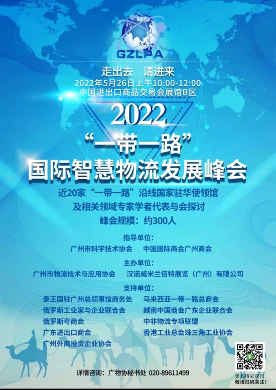 在成功舉辦兩屆峰會的基礎上,我協會將繼續攜手深入與20家以上“一帶一路”沿線國家駐穗總領事館和駐華使領館及各大商協會加強合作,定于2022年5月26日在中國進出口商品交易會B區隆重舉辦2022第三屆“一帶一路”國際智慧物流發展峰會。本次峰會規模約300人,誠邀“一帶一路”沿線駐穗總領事館和駐華使領館以及對“一帶一路”有興趣的企業代表出席本屆峰會,并邀請“一帶一路”沿線國家相關企業物流倉儲負責人及代表共同參與,推動“一帶一路”物流技術與應用的發展。