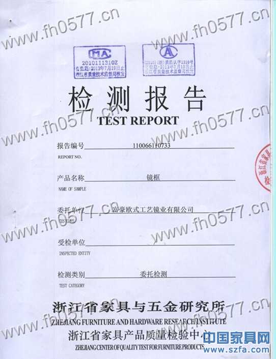 | 發(fā)證機(jī)構(gòu): | 浙江省家具與五金研究所 | 發(fā)證時(shí)間 : | 2010-07-20 |
