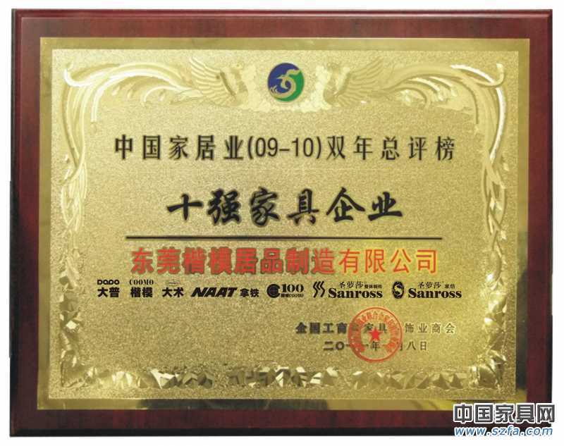 楷模家具榮獲“中國家居業09-10中國十大家具品牌”