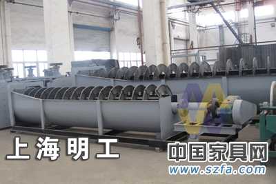 1、高堰式分級機:溢流端螺旋葉片的頂部高于溢流面,且溢流端螺旋中心低于溢流面。主要用于溢流粒度為0.83-0.15mm的礦石分級;