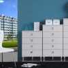產(chǎn)品風(fēng)格:設(shè)計(jì)師以象牙白鋼琴烤漆為底色,通過但白而直帥的鐵灰色作點(diǎn)綴,再適當(dāng)?shù)奈褰鸺佑谛揎棧a(chǎn)品厚重大方,簡約清爽。