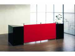 均衡的設(shè)計(jì)體現(xiàn)于辦公桌又醒目于接待臺(tái)系列化,臺(tái)面、支腳及側(cè)面嵌板的結(jié)合獨(dú)具匠心,通過(guò)金屬固定板的連接又巧妙地嵌于頂部。