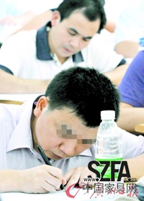 機(jī)關(guān)干部的考試中,有的應(yīng)考者幾乎趴在桌上,