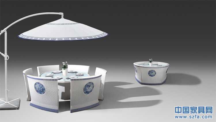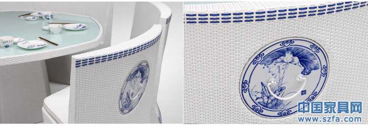 觀唐 陽臺休閑家具青花瓷-婉 花園餐桌椅庭院仿藤家居