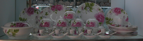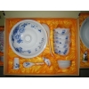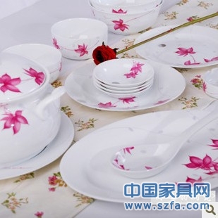 餐具的主要規格為:28頭(配置:6盤 6碗 6碟 6勺 1斗碗 1飯勺 1牙簽筒 1煙缸)、38頭(配置:4盤 6碗 6碟 6小勺 6筷子架 1牙簽筒 1飯勺 1大飯碗 1煙缸 6筷子)和56頭(配置:10盤 10碗 10碟 10勺 10筷子架 1牙簽筒 1飯勺 1飯缽 1缸 1魚盤 1大圓盤) ,其他規格可以配置。單位還可來樣定做餐具,自己公司的‘面子’印制上去。景德鎮陶瓷餐具可以稱的上為"白如玉、明如鏡、薄如紙、聲如磬",