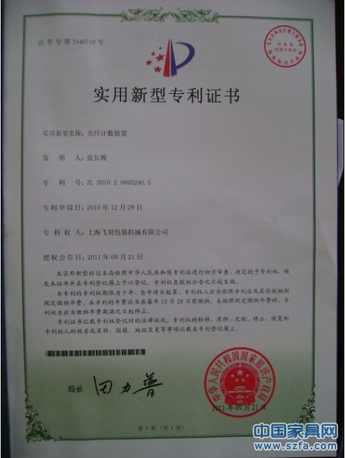 | 上海飛羽包裝機械有限公司是一家集研究開發、生產制造、市場銷售于一體的專業五金配件自動包裝機械生產廠家,多年來公司一直致力于五金配件自動計數包裝機的技術革新,并取得了多項關鍵技術的國家專利。其中有:光纖計數裝置(專利號:ZL 2010 2 0695240.5)此項技術一舉克服了對于包裝物料單包數量的限制,提高了計數準確率可使準確率達到100%;稱重檢測裝置(專利號:ZL 2011 2 0094492.7);并發明了稱重復檢稱(發明專利號:ZL201110083021.0)此設備進一步保證了包裝數量的100%的準確率;此外本公司還開發了多項獨家技術 ,比如有分格包裝技術(對于多物料包裝可使每種物料分別包裝到相對應的小格里,一條有多格為一個包裝);稱重和光纖混合計數技術 (此項技術應用于單包大數量的計數包裝,效率高)。