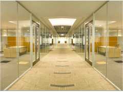 40單玻隔墻由12mm整片式玻璃頂天立地搭配鋁型材組合而成,頂底部的型材面高45mm,玻璃模塊和轉角之間型材寬為30mm,型材表面呈弧形,玻璃與型材之間采用特制膠條密拼,隔音效果良好,外觀極為雅致,利用最佳自然光,根據需要可在玻璃上貼磨砂膜,貼膜可隨時去除,無需更換玻璃。可拾配傳統木門、地彈簧玻璃門、合頁玻璃門等,配置不同款式的鎖體、把手、門控設備,還可以85H、85G、100系列連接搭配。