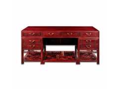 8抽辦公臺(tái),非洲花梨材質(zhì)。本身已具有條紋和交錯(cuò)紋理共同構(gòu)成特殊的美麗花紋,再加上工匠的精心打造,更是美輪美奐,整體造型典雅而莊重。