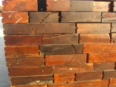 宏觀構(gòu)造:散孔材。管孔肉眼下明顯,少,略大;主為單管孔,少數(shù)徑列或斜徇復(fù)管孔(2~3個(gè));具黑色樹(shù)膠及硫磺色沉積物。軸向薄壁組織肉眼下明顯,發(fā)達(dá),翼狀及輪界狀。木射線放大鏡下明顯,密度中,甚窄。 木材材性: 微具光澤。紋理深交錯(cuò);結(jié)構(gòu)粗;質(zhì)量硬;強(qiáng)度高;干縮甚小。鋸、刨加工困難,樹(shù)膠易塞鋸齒;膠接、車旋、油漆性能良好;釘釘需先打孔;能腐蝕金屬。耐腐。干燥慢,但穩(wěn)定性很好。氣干密度value=".8" unitname="g" w:st="on">0.80g/cm3。 木材用途: 適用于室內(nèi)外裝修、重輕型木結(jié)構(gòu)、木地板、細(xì)木工、枕木、橋梁、碼頭、別墅庭院,雕刻、旋切裝飾單板,也是紅木家具的替代品。從硫磺色沉積物中可提取紋織染料等。