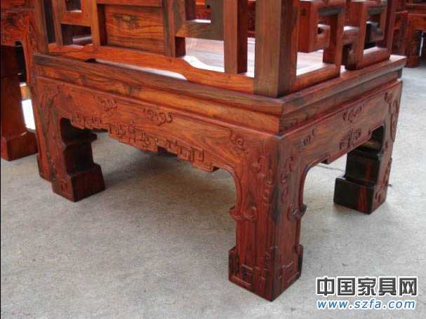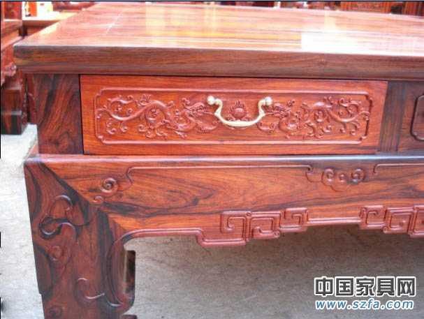 其制作家具的工藝也應和紫檀木一樣,即最后的工序應使用調勻底色,然后燙蠟的方法,千萬不能使用普通硬木的做法---用漆。因為老紅木飽含蠟質,只需打摩擦蠟,即可平整潤滑,光澤耐久,給人一種淳厚的含蓄美。如果采用現代的擦漆工藝,恰恰掩蓋了其木質的優良本性和紋理的自然之美。且老紅木用漆來處理,容易給一些廠家將其它木材摻雜其中,為其渾水摸魚提供便利。