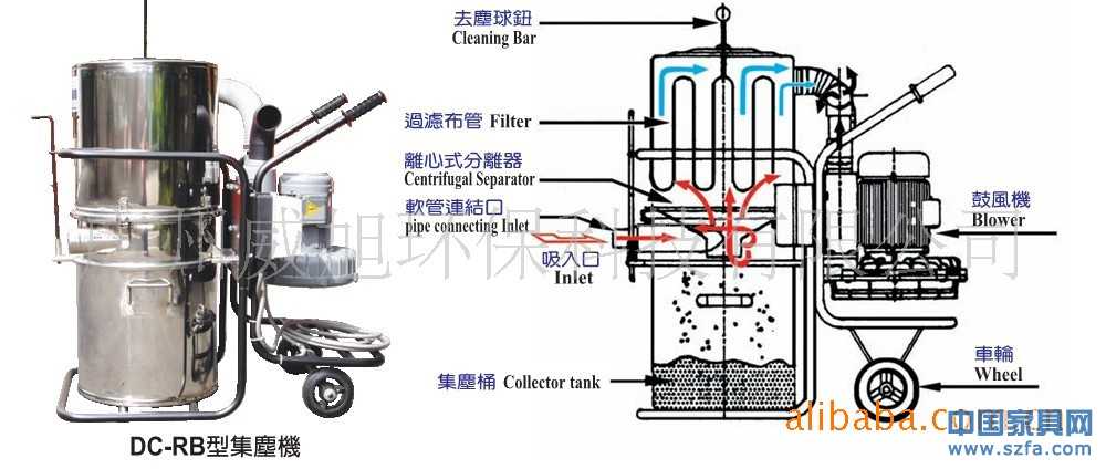特性:本集塵機為本公司最新制造,采用旋風收塵極喻袋式吸塵機之特長,吸力特強。、