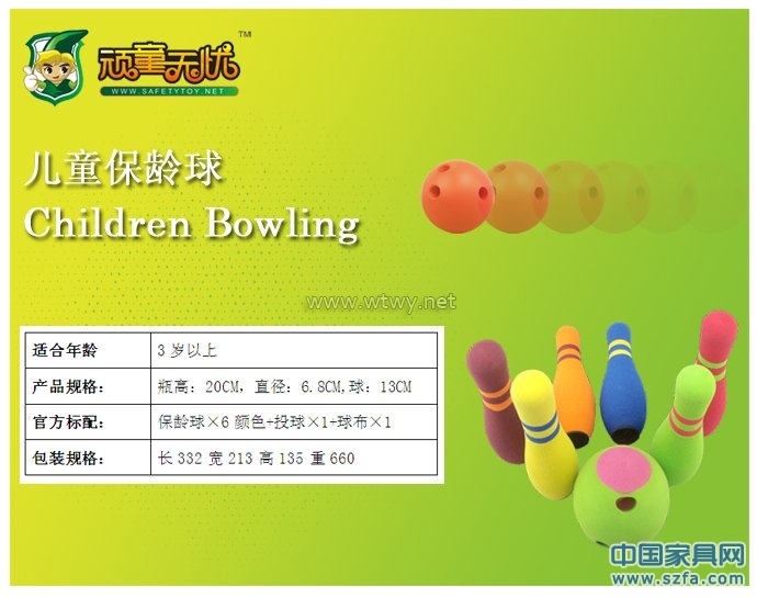 保齡球是現(xiàn)代文明社會的一種高尚運動,也是現(xiàn)代人消遣和娛樂的運動,尤其是受到廣大青少年的喜愛和追捧。近半世紀來,更成為家庭娛樂的好選擇。本產品的誕生,源于球館,而球館里的球之重量,使一般小孩(5歲—12歲)不勝負擔,造成流產運動,打不到目標球瓶。為了促成完美的運動效果,本產品降低球體的重量,更加符合各年齡段孩子的臂力所需,使這些孩子也能享受到保齡球運動帶來的樂趣,尤其外表材質采用特殊橡膠發(fā)泡材料,具有色彩鮮艷、耐磨、安全、輕便等優(yōu)點。室內室外都可以無憂玩要!