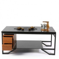 火燒石功夫茶桌簡約現代創意客廳辦公茶臺大理石茶幾帶電磁爐儲物