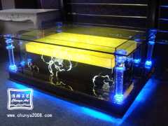 ——公司產(chǎn)品新潮時尚,造型精致,主要包括沙發(fā)、茶幾(角幾)、吧桌(吧臺)、吧凳(吧椅)、擺柜(擺臺)及包廂門、發(fā)光酒柜、發(fā)光樓梯等;