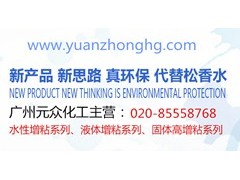 選擇高品質(zhì)的水性松香廠家,就到元眾化工!廣州市元眾化工有限公司注重提高產(chǎn)品質(zhì)量,提升品牌形象的同時,不斷健全營銷網(wǎng)絡(luò)、完善服務(wù)體系,并及時推出適應(yīng)市場需求、顧客需要、具有價格優(yōu)勢的新化工產(chǎn)品。本公司的水性松香廠家主要是用于供水性膠粘劑、油性膠粘劑、油漆、水漆、油墨、熱熔膠、密封膠、阻尼膠、自粘密封條、壓敏不干膠、粘膠帶、防水油膏、防水卷材及皮革澀蠟劑等行業(yè)使用,由于公司產(chǎn)品優(yōu)質(zhì),價格合理,使得公司在粘合劑行業(yè)領(lǐng)域內(nèi)受到業(yè)內(nèi)人士的傳播認可。