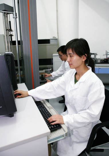 實驗室一期占地2000平方米,擁有德國五通道力學測試設備,美國熱電ICP(電感耦合等離子體發射光譜儀),美國熱電GC-MS(氣相色譜-質譜聯用儀),瑞士萬通卡爾費休水分測定儀;日本島津紫外可見光分光光度計UV1700,恒溫水浴搖床;美國密里博純水制備系統等國際最先進的儀器設備。
