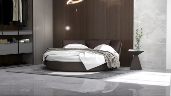 圓床入眼就很高級,巧克力棕色為臥室注入浪漫氣息。