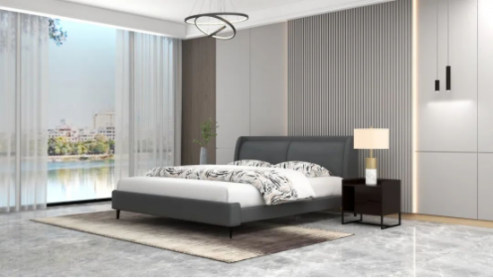 通體的黑色皮質集舒適觸感與美觀度于一體,泛著光澤,演繹不動聲色的輕奢質感,低調沉穩,打造出品質臥室~