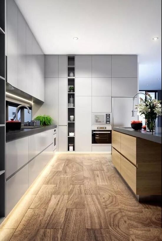 開放式廚房如何既能保持格調,又非常具有實用的功能性?那么非隱形柜莫屬。它絕對的高逼格,高品質感,特別適合現(xiàn)代時髦家庭。