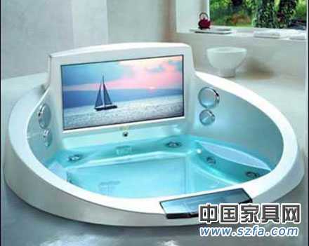 喜歡享受生活的人,沐浴也是一種情趣。很多人會(huì)在自己的浴室里安裝一臺(tái)大電視,這樣就可以泡澡、娛樂(lè)兩不誤。但是,如果家里的衛(wèi)生間不夠大呢?國(guó)外一家潔具生產(chǎn)商推出了一款自帶電視的水流按摩浴缸。這款浴缸嵌有一部43英寸的高清晰平板電視,以及相當(dāng)不錯(cuò)的音響系統(tǒng),用戶可以使用遙控器方便地選擇電視頻道。不過(guò),這款浴缸售價(jià)不菲——能花3.2萬(wàn)美元(約合人民幣26萬(wàn)元)買一個(gè)浴缸的客戶,家里估計(jì)也有一個(gè)足夠放一臺(tái)大電視的浴室了。