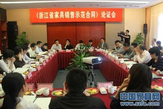 10月10日浙江省家具銷售合同論證會在杭州金溪山莊順利召開。為明確家具買賣交易中的各種權利和義務,避免不公平條款,保護當事人合法權益,促進我省家具市場健康發展,浙江家具行業協會與浙江省家具與五金研究所共同起草了《浙江省家具銷售格式合同》(征求意見稿),修訂完善后將報省工商局備案。為使格式合同具有科學性、公正性,召開各方代表論證會,會議邀請部分家具市場、家具企業代表參加,省工商局、省消保委相關負責人出席會議。