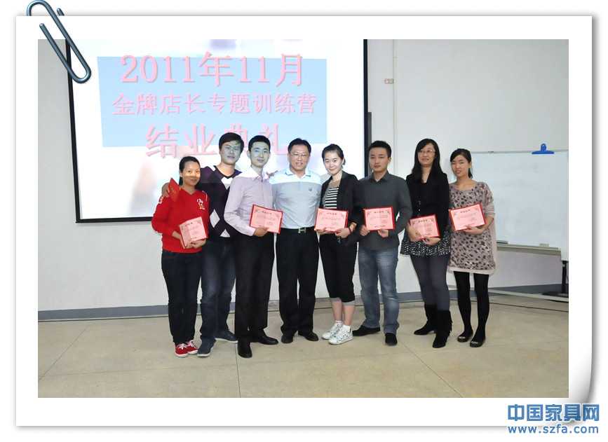 11月17日晚上進行的是店長班的結(jié)業(yè)典禮環(huán)節(jié),深圳市家具行業(yè)協(xié)會侯克鵬秘書長參加了本次結(jié)業(yè)典禮,并且為優(yōu)秀團隊頒獎以及為學(xué)員頒發(fā)了結(jié)業(yè)證書。