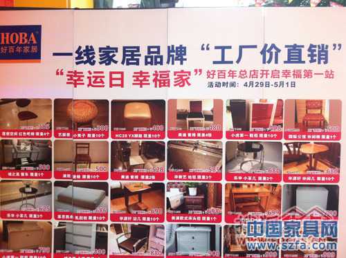 好百年家居賣場早在五一節前夕就早早開始宣傳其“一線家具品牌工廠價”直銷活動,而在5月1日,記者來到好百年家居發現,這次“工廠價”活動還是以低價折扣為主,涉及包括慕思,華源軒,七彩人生,紅蘋果等多家知名家具品牌,不管從力度和范圍上,都稱得上“勁爆”。而除了門口處醒目的標語之外,好百年家居賣場內部也是“精彩紛呈”。從健威家具的“黃金周送黃金”到滿場跑的舒達小羊,就連一向甚少做活動的芝華仕都搬出了“歌舞秀”,可見商家們對于這個黃金周的重視程度。