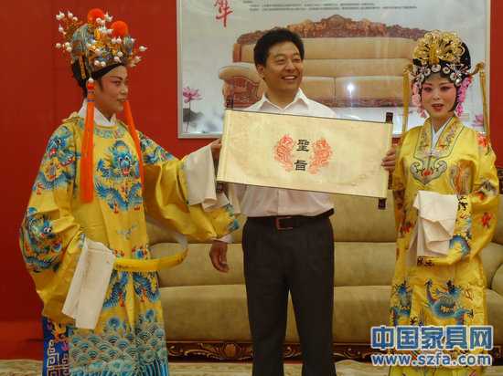 2012年4月28日,犀牛企業攜旗下產品高調參展首屆中國蘇州文化創意設計產業交易博覽會。開展當天,犀牛的展位上來了兩位至高無上的人物——唐明皇和楊貴妃。這對千古璧人借國家一級演員王永蘭、吳愛玲女士兩人的精湛演技穿越到了現代,并給犀牛頒布了一道圣諭:[茲聞蘇州首屆創意設計產業交易博覽會于公元二零一二年四月二十八日于蘇州國際博覽中心隆重舉行。犀牛企業致力于“傳承百年文化,東方智造”的產品理念。己于公元二零一一年經過業內資深專業人士策劃,成功推出犀牛系列并入主中南海,成為全國首家家具企業“中南海高端沙發供應商”成為有文化、有品位、收藏愛好者、成功人士的家具首選高檔品牌。犀牛企業根據高端顧客的需求,推出了獨一無二的定制化服務。布告中外,咸使聞之。