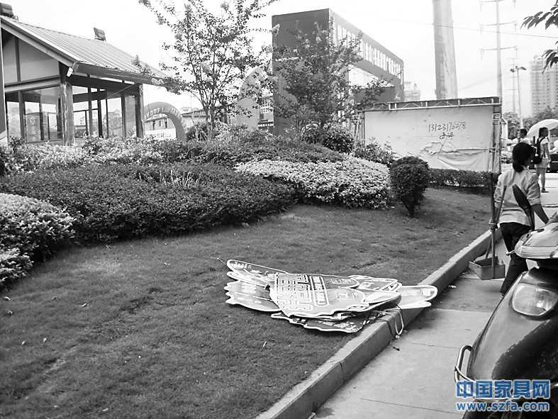 據目擊者熊先生介紹,昨日下午5時許,幾名穿著襯衫、腰間掛著對講機的男子從左海家居廣場里沖出來,朝著門外正在向市民發送傳單的促銷員一陣怒吼。他們強行從女促銷員手中搶過傳單,并將掛在男促銷員身上的宣傳牌撕壞,還追打一名男促銷員,嘴里喊著“打死你”。