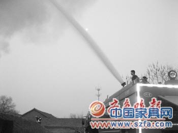據(jù)消防人員描述,事發(fā)時(shí),現(xiàn)場(chǎng)上空彌漫著大量濃煙,整個(gè)作坊大院里也被濃煙覆蓋,并不時(shí)有火焰從院墻里竄出,火勢(shì)最高時(shí)甚至能達(dá)到3—4米,并長(zhǎng)時(shí)間處于猛烈燃燒階段。據(jù)悉,由于著火的主要是木頭等易燃品,再加上風(fēng)力較大,大火借著大風(fēng)迅速蔓延,嚴(yán)重危及毗鄰建筑和周圍人員的生命財(cái)產(chǎn)安全。為了控制火勢(shì),消防官兵分為兩組,一組爬上周圍建筑,從上方射水滅火,另一組從正面射水滅火,兩路夾擊扼殺火勢(shì)。