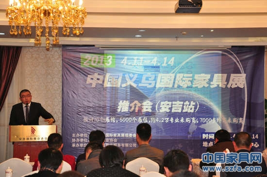 2013年1月11日,2013中國義烏國際家具展招展發布會安吉站順利召開。出席嘉賓有詩永康培訓導師吳永康,安吉縣竹產業發展局局長方朝陽及眾行業老總,義烏國際家具展等領導及工作人員。