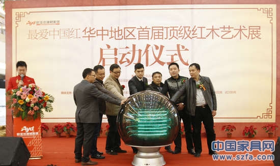 12月15日上午,“最愛中國紅——華中地區首屆頂級紅木藝術展”啟動儀式在徐東歐亞達建材家居生活廣場隆重舉行。湖北省家具協會、武漢市家具協會秘書長謝文橋,武漢市收藏家協會紅木專業委員會主任、著名紅木鑒賞家葉立新,歐亞達集團總裁助理、徐東歐亞達建材家居生活廣場總經理徐建剛以及藝尊軒、明智御品、東朗紅木、東方明韻、閔逸軒、閱古會心等優秀紅木家具廠商老總們共同見證了本次紅木藝術展的盛大啟幕。