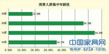 經調查,進店購買家具的消費者年齡層次主要為70后,占比64.89%;其次是80后,占比56.38%;60后的消費人群比例為36.17%;最少的是90后,占比18.08%。家具行業作為房地產的下游產業深受房地產行業的影響,目前來看,買房的主力軍仍是70后、80后,因此相對應的家具消費主力軍也是70后、80后,而作為90后消費者購買家具時大多會有家長的陪同,作為目前大多成功人士多的60后是一些高檔歐美及其他高端家具消費的主力軍。