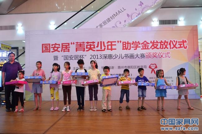 當(dāng)天除了舉行助學(xué)儀式之外,惠陽(yáng)國(guó)安居還舉行了2013國(guó)安居“深惠少兒書畫”比賽的頒獎(jiǎng)儀式,儀式上頒發(fā)了金銀銅紀(jì)念獎(jiǎng)總共50名,分別都獲得了由國(guó)安居提供的ipad2、獎(jiǎng)杯、電子相框、精美學(xué)習(xí)用品、獲獎(jiǎng)證書等獎(jiǎng)品。據(jù)國(guó)安居副總鄧劍峰介紹,本次的惠陽(yáng)國(guó)安居少兒書畫大賽是國(guó)安居舉辦以來人數(shù)最多,遍布最廣,評(píng)選獲獎(jiǎng)名額最多的一次。