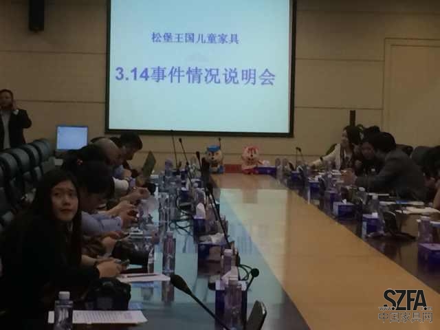 2014年3月19日,由松堡王國、深圳家具協會傳媒中心聯合主辦的“松堡王國3.14事件情況說明會”在深圳會展中心舉行。現場共有近50家媒體參加了此次“3.14事件“說明會,與會松堡王國向廣大媒體朋友們鄭重澄清”3.14事件“中關于我司不實信息的報道。