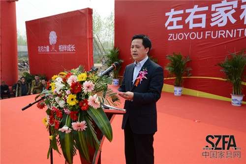 宿州市市長史翔,市委常委、宣傳部部長何志中,副市長邵郁,市政協副主席何平,高新區管委會黨工委書記、副主任祖鈞公,市局相關部門領導,深圳出入境邊防檢查總站副總站長、深圳市政協委員黃黎雄,深圳市家具行業協會會長、深圳市左右家私有限公司董事長黃華坤,深圳市家具行業協會執行會長、深圳市仁豪家具發展有限公司董事長尤國忠,深圳市家具行業協會榮譽主席、香港興利集團執行董事黃偉業,深圳市家具行業協會秘書長洪小惠,中國家具銷售商聯合會名譽會長、蘇州市亞博家藝有限公司董事長楊亞中,中國家具協會副理事長、安徽省家具協會理事長、宿州海鵬家居產業投資有限公司董事趙卓華出席奠基儀式。除此之外,出席奠基儀式的還有深圳家居企業深圳興利集團、圓方圓、仁豪、德勝家私、森堡家私、七彩人生的企業家,及左右家私來自30多個地市的代理商。史翔、黃華坤、趙卓華等分別熱情致辭,市長史翔宣布開工并揮鍬奠基。
