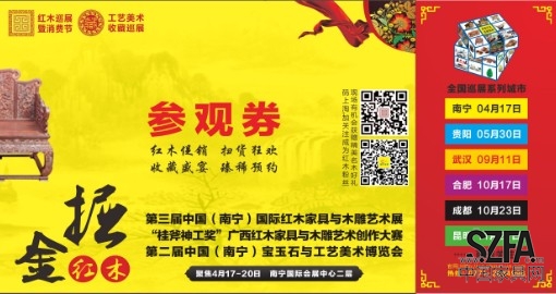 為彰顯南寧作為大西南區域紅木商貿物流樞紐地位,檢閱廣西紅木木雕產業強勁發展實力,以“掘金紅木,傳承典藏”為主題的2014第三屆中國(南寧)國際紅木家具與木雕藝術展即將于本月17-20日在南寧國際會展中心二層再度炫彩啟幕。該展會致力于打造兼具行業交流、信息分享、品牌推廣、展示交易、收藏鑒賞、投資理財、文化交流等功能的 “一站式”紅木木雕營銷攻略平臺, 積極營造“淘寶趕集”盛況,力推“雅居 + 藝術 + 收藏”三元一體家居文化藝術生活新方式,塑建大西南地區屈首一指的中式家居文化藝術高端消費盛會。