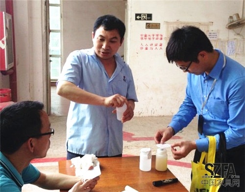 “您好,您是名林凱旋公司么?我是深圳市家具行業(yè)協(xié)會的工作人員某某…”電話預(yù)約,上門抽樣,為樣品貼封條,雙方簽字確認,帶回檢測產(chǎn)品進行實驗,出具檢測報告…
