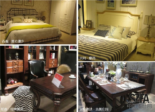 本屆展會,多數品牌新推出了地中海風格、美式風格的產品,這些展位都人氣爆棚,與周邊參展現代實木風格的展位形成鮮明對比。