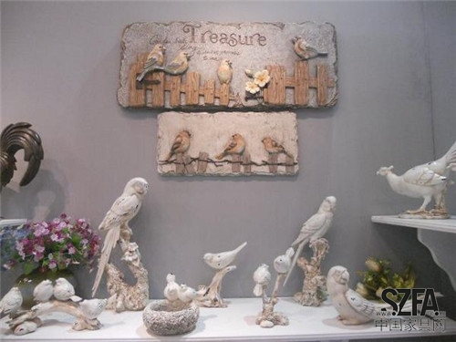 這里,除了常見的樹脂、陶瓷類產品,還有鐵藝,花器,油畫,鐵木產品,小家具等,產品鏈日漸豐富……