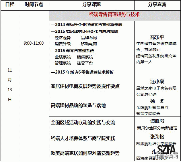 在“2015年家居建材零售技術與未來行業營銷峰會”上,您將與標桿企業的營銷高手、家居建材營銷管理專家面對面交流、分享與探討,特邀嘉賓: