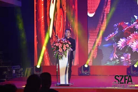 香港童話森林執行董事黃東鵬先生上臺致新年賀詞。從經濟新常態、新中式、營銷模式變革三方面著重詮釋了“童話夢再出發”。