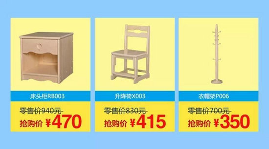 凡購買套房家具(床、衣柜、書桌)3件家具,可半價購買書桌椅、衣帽架、床頭柜三件家具,備注:3選1