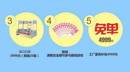 活動期間,購買松堡王國產品每滿6000元即獲得金蛋券一張,滿12000元獲得兩張,以此類推,上不封頂;蛋蛋有禮,禮惠到底,100%中獎,最高4999元免單大獎!還有電冰箱、自行車、松堡乳膠枕、青花瓷各種豪禮等你來拿!