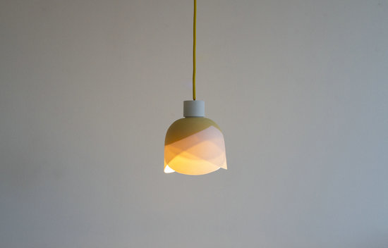 緩慢旋動模具,調整角度,泥漿在模具內壁表面不同的位置凝結;高溫燒制,陶瓷肌理層層分明,“舞動的燈”在燈光的透射下,仿佛如搖曳的裙擺,讓平靜的生活舞動起來。