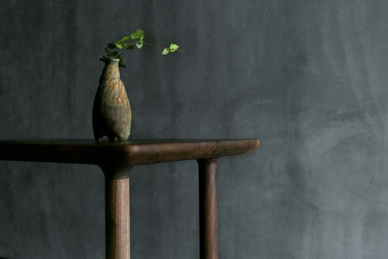 初看茶臺,讓人不禁回憶舊時故里,放置在高堂的高桌,素雅與靜怡。茶臺由純黑桃木制做,利用榫卯結構,搭建上下兩層,加大了放置物品的空間與增加了便利性。從舊日的高桌中提煉質樸,從當代居家需求中加以改良。