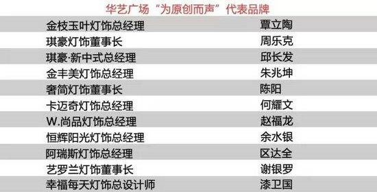 華藝廣場作為“世界燈飾MALL”,匯集了行業(yè)最優(yōu)秀的原創(chuàng)實力品牌,一直在為原創(chuàng)而聲,去年10月份,舉辦了華藝廣場燈光文化藝術(shù)展,展示了燈飾原創(chuàng)藝術(shù)文化;還聯(lián)合政府舉辦了燈都品牌大會暨知識產(chǎn)權(quán)保護(hù)信用體系建設(shè)發(fā)布會。我們致力推動原創(chuàng)品牌的發(fā)展,并向終端市場輸送源源不斷的原創(chuàng)暢銷產(chǎn)品。