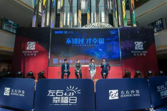 最后,左右品牌幸福大使楊瀾和各位家居業大佬一道將手掌伸向大屏中的“啟動能量球”,屏幕瞬間變幻,瑰麗五彩的光芒中烘托出一排藍色大字:“4.23左右幸福日”——從此,4月23日因左右沙發而被賦予“幸福”的涵義。