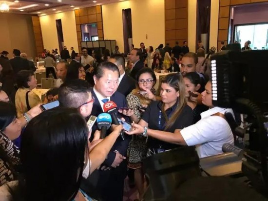 受邀出訪巴拿馬的月星集團董事局主席丁佐宏被巴拿馬媒體包圍