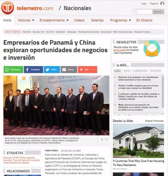 巴拿馬主流媒體Telemetro以“巴拿馬和中國企業(yè)家探討商業(yè)和投資機會”為題報道活動盛況